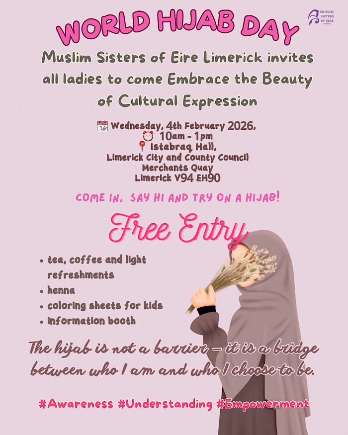 For the first time ever, Muslim Sisters of Éire is celebrating World Hijab Day with events across Cork, Limerick, and Dublin!